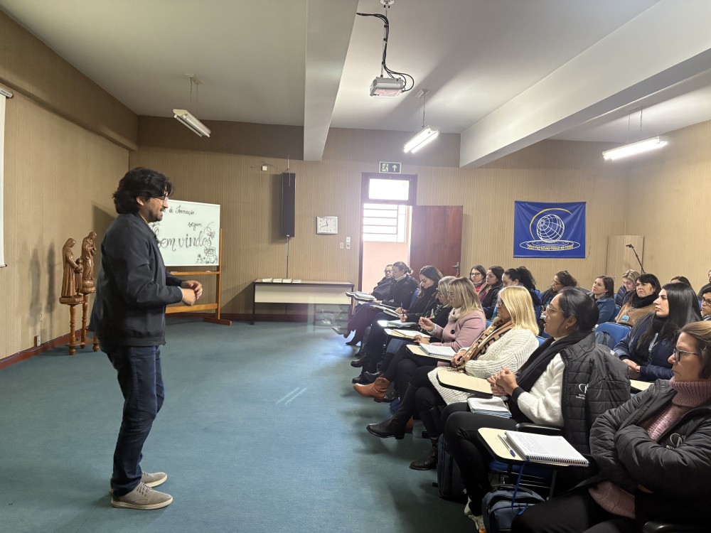 No segundo dia, o grupo retomou os estudos sobre o Currículo e Metodologia Notre Dame. A programação também incluiu uma palestra, transmitida por videoconferência, com Hans Zollner, que abordou as estruturas e processos necessários para uma formação integral e a promoção de espaços seguros na Igreja Católica.